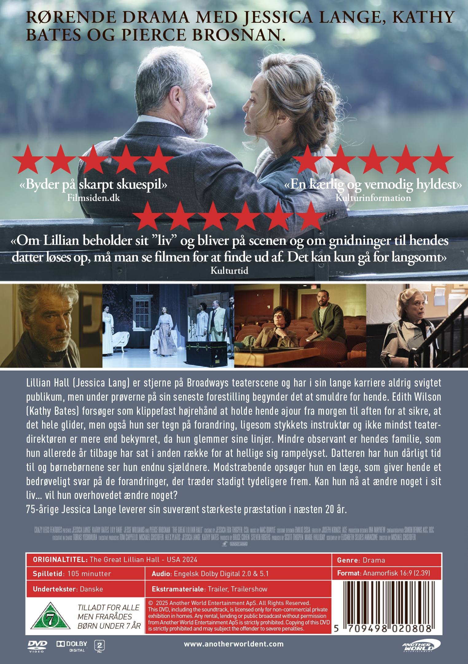 Hovedrollen var egentlig tiltænkt Meryl Streep, men som fuldgyldig erstatning får vi 75-årige Jessica Lange, der med sin fortolkning af THE GREAT LILLIAN HALL giver sin suverænt stærkeste præstation i næsten 20 år.